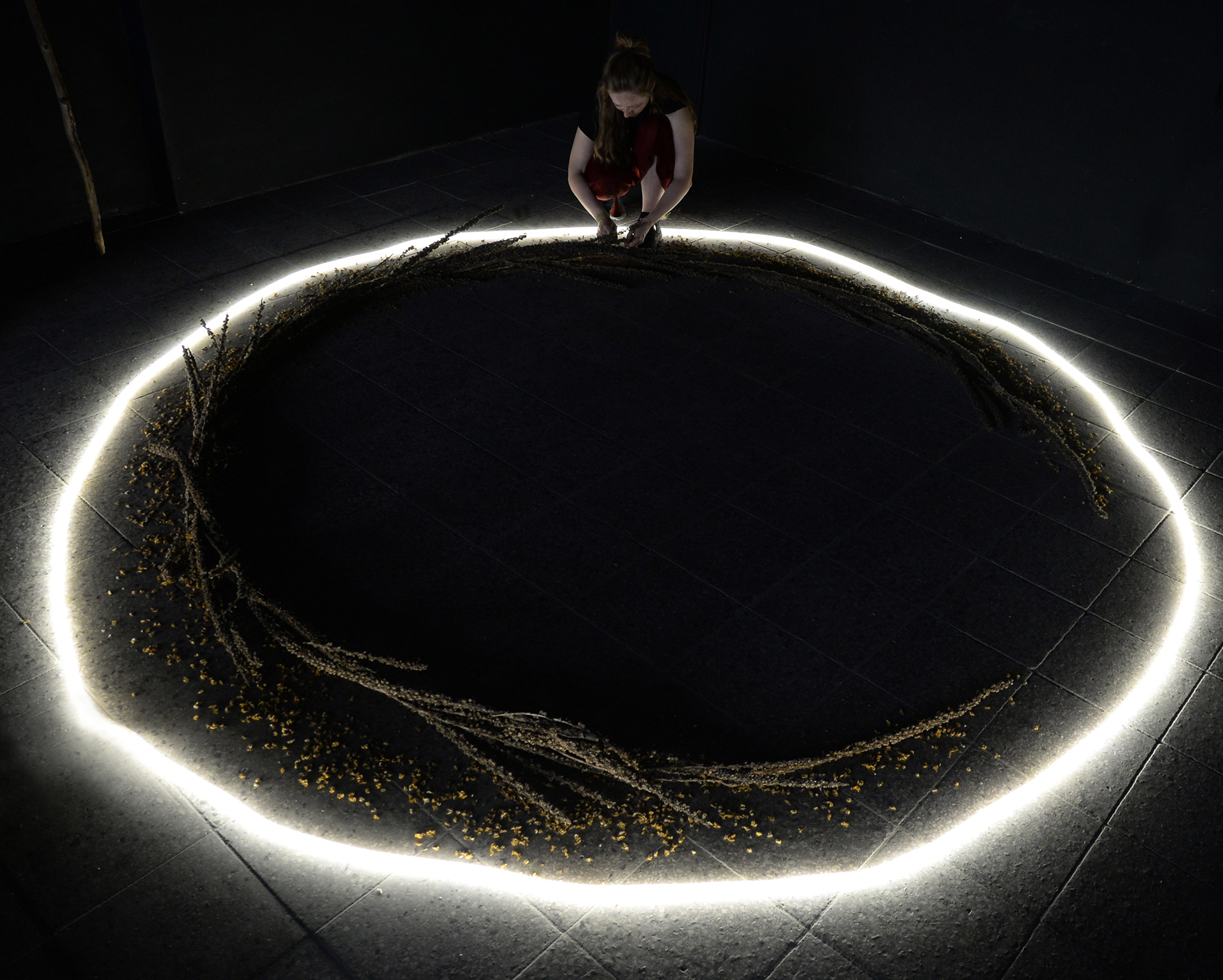 Instalacja rzygotowywana pomiędzy dzikimi istotami, roślinami i odczytywanymi wciąż od nowa zdaniami “Biegnącej z wilkami”, pomiędzy protestami kobiet i niezgodą na niszczenie otaczającej przyrody. Ale za to z wiarą w (sekretny) aktywizm, praktykę głębokiej kultury i głębokiej ekologii. Wystawa ta jest jedną z kolejnych prób dodania odwagi w wypracowywaniu nowych, dobrych opowieści o świecie, do budowania wspólnoty – również tej ponadgatunkowej.